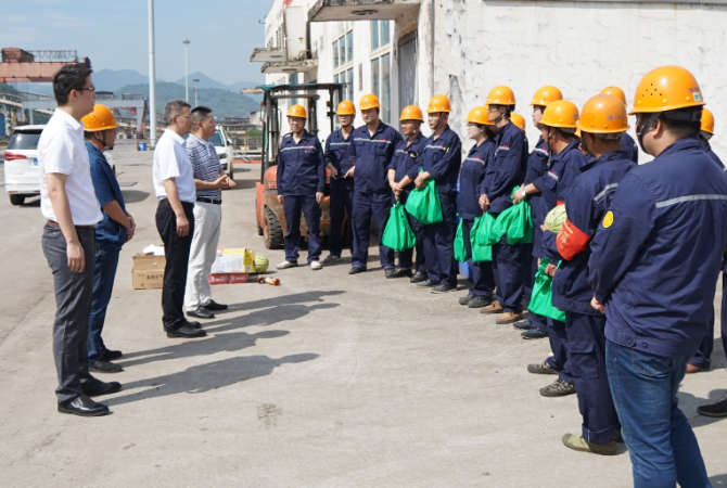 炎炎夏日,,,,,奋战在一线的职工时刻牵动着集团向导们的心。。。。。。。。8月2日,,,,,集团工会开展了深入生产一线“送清凉”慰问运动。。。。。。。。集团党委副书记、总司理金自力率队,,,,,党委委员、副总司理肖华高,,,,,工会主席、团委书记张约翰一行前往新港长龙、韦德网站官方入口能源环保慰问在酷暑中坚守岗位、辛勤劳动的一线职工,,,,,为他们送去了亲热的眷注和夏日的清凉。。。。。。。。